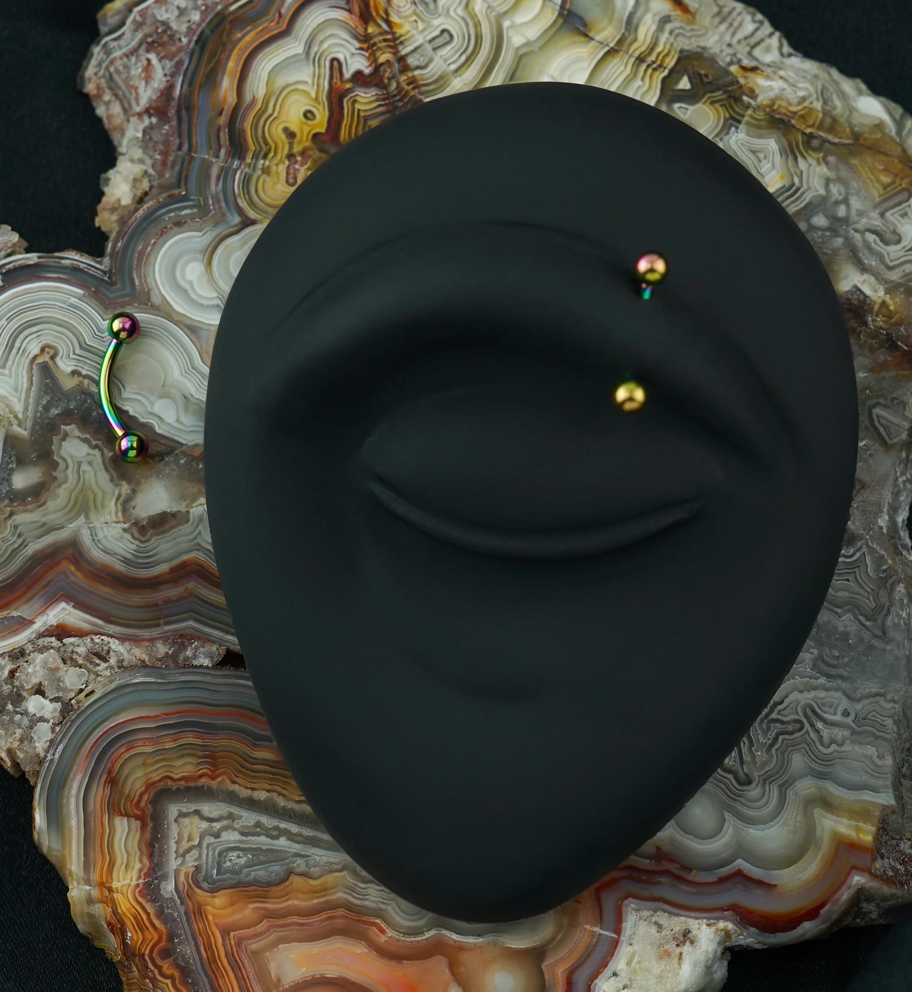 Add a splash of color to your healed piercings with this Rainbow PVD Titanium Curved Barbell! Featuring a ASTM F136 titanium build and vibrant rainbow finish, itās perfect for eyebrow or rook piercings. The externally threaded design ensures easy, comfortable wear, while the 3mm balls add just the right pop. Sold individually and sized at 16G with an inner length of 5/16" (8mm).