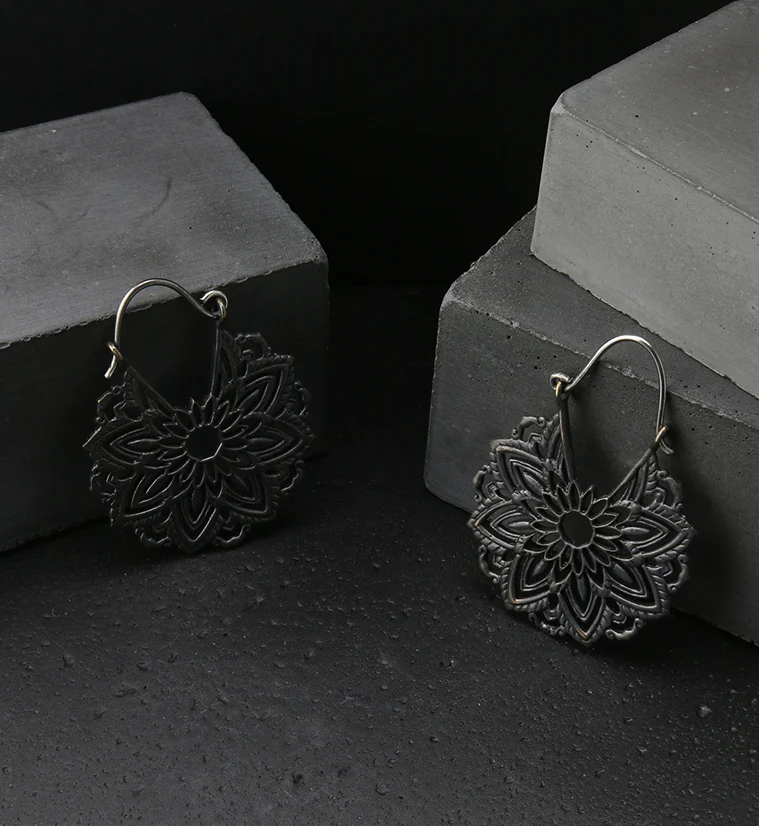 18G Ornate Mandala Black Brass Earrings