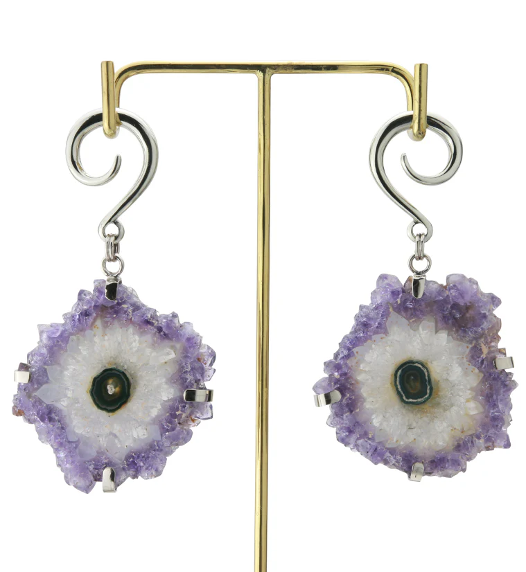 Amethyst Stalactite White Brass Ear Weights Version 5