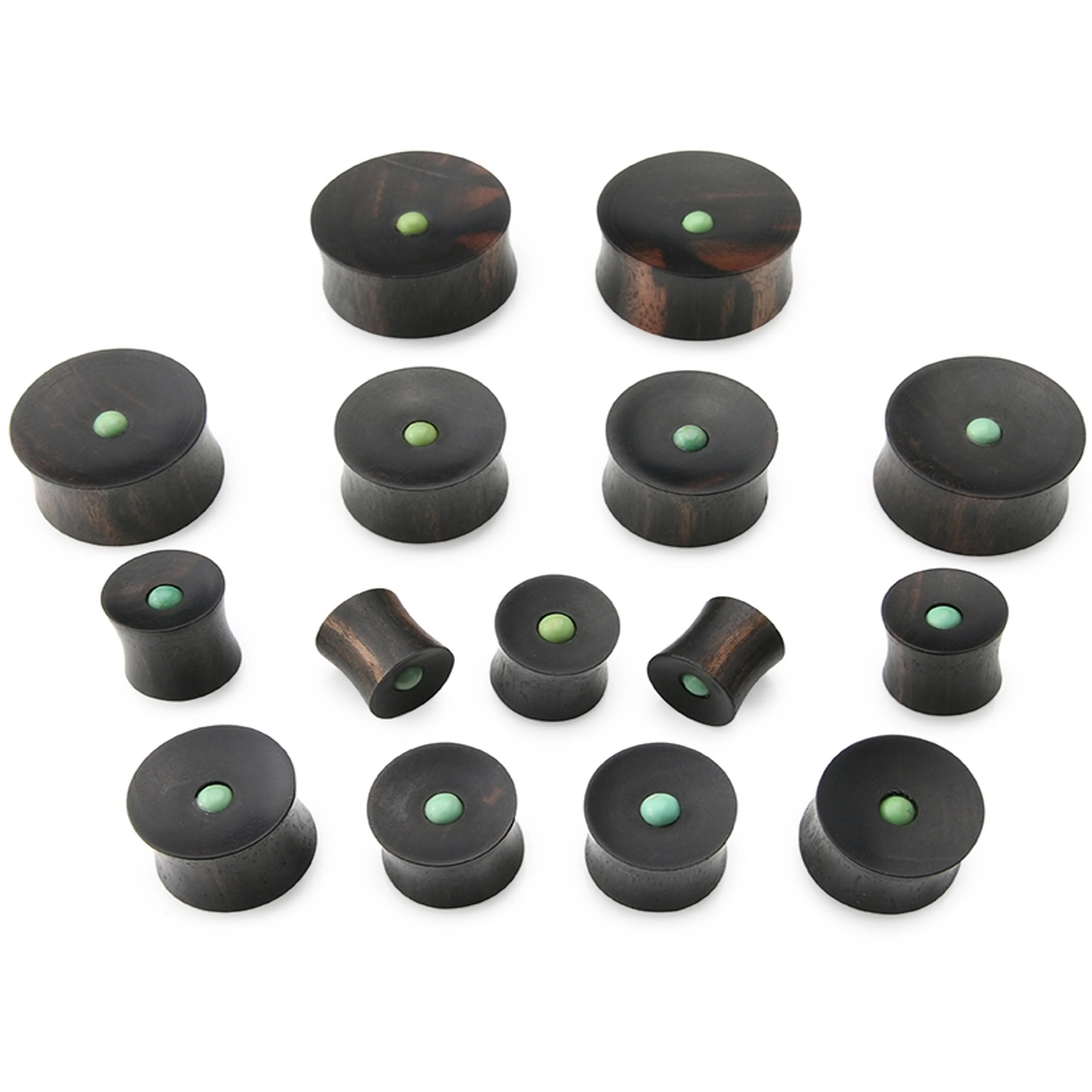 -70%Areng Wood Plugs with Green Turquoise Inlayā